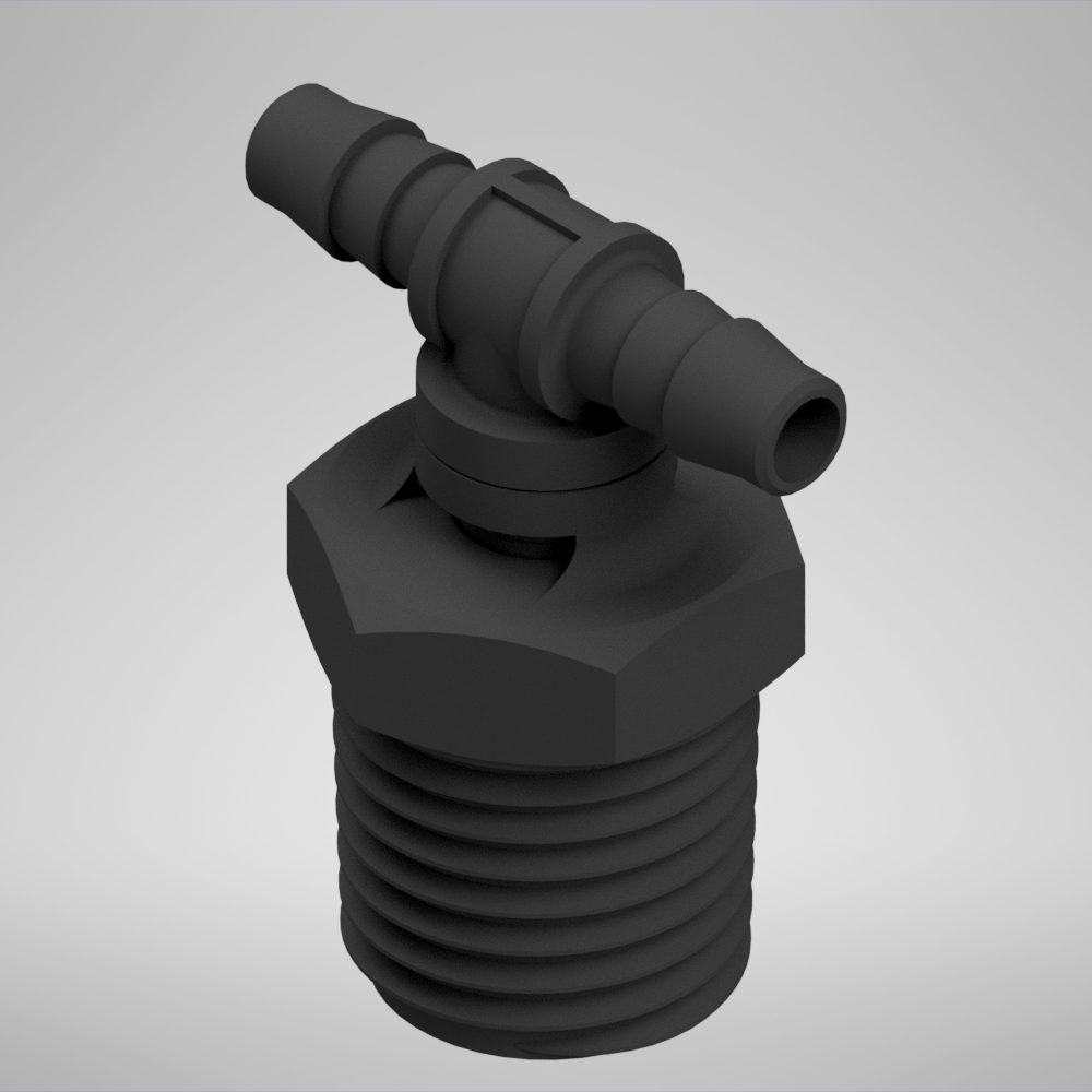 Swivel fittings connect tubing to a threaded hole. The barb (and tubing) can be freely rotated from the base. An integrated sealing bead provides a convenient and cost effective seal against the mating part. Barbed connections are a clean, time tested and cost efficient method of connection. The hoop strength of the tube holds around the barbed fitting. Air Logic's first barb is free of a parting line to create a good seal, additional barbs increase holding force for tube retention. Buna is used as the standard elastomer, but we are also able to produce with Ethylene Propylene Diene Monomer (EDPM), Fluoroelastomers (FKM), or Silicone.
