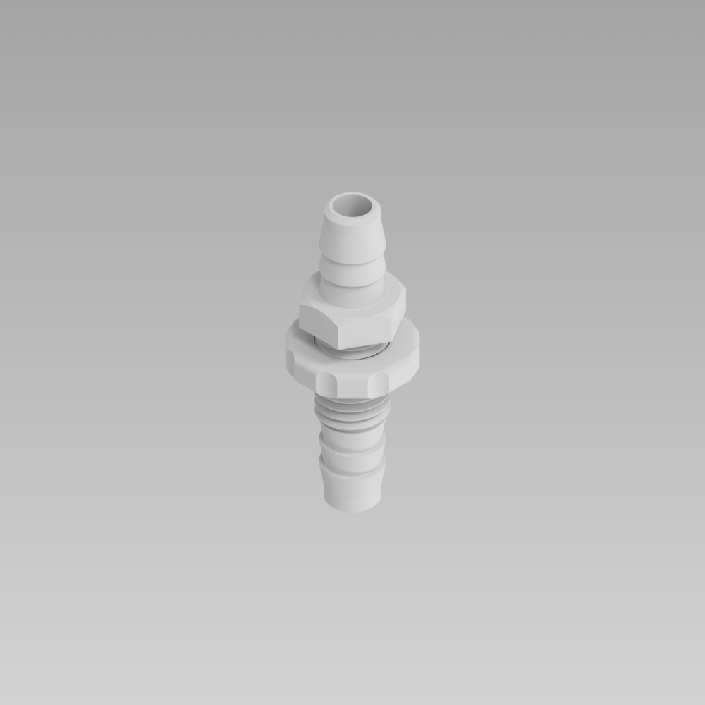 N/A Bulkhead Fitting, 1/8X1/8" Barbs, Nylon | Tubing Inside Diameter (ID) N/A 1/8 in | Wetted Material(s) N/A Nylon | Clearance Hole in Panel N/A 9/32" | Retaining Nut Included N/A Yes |