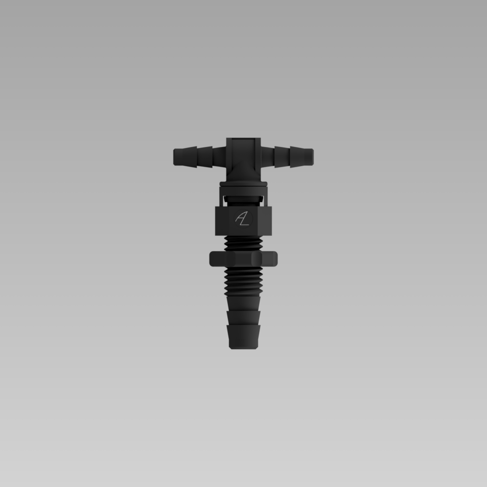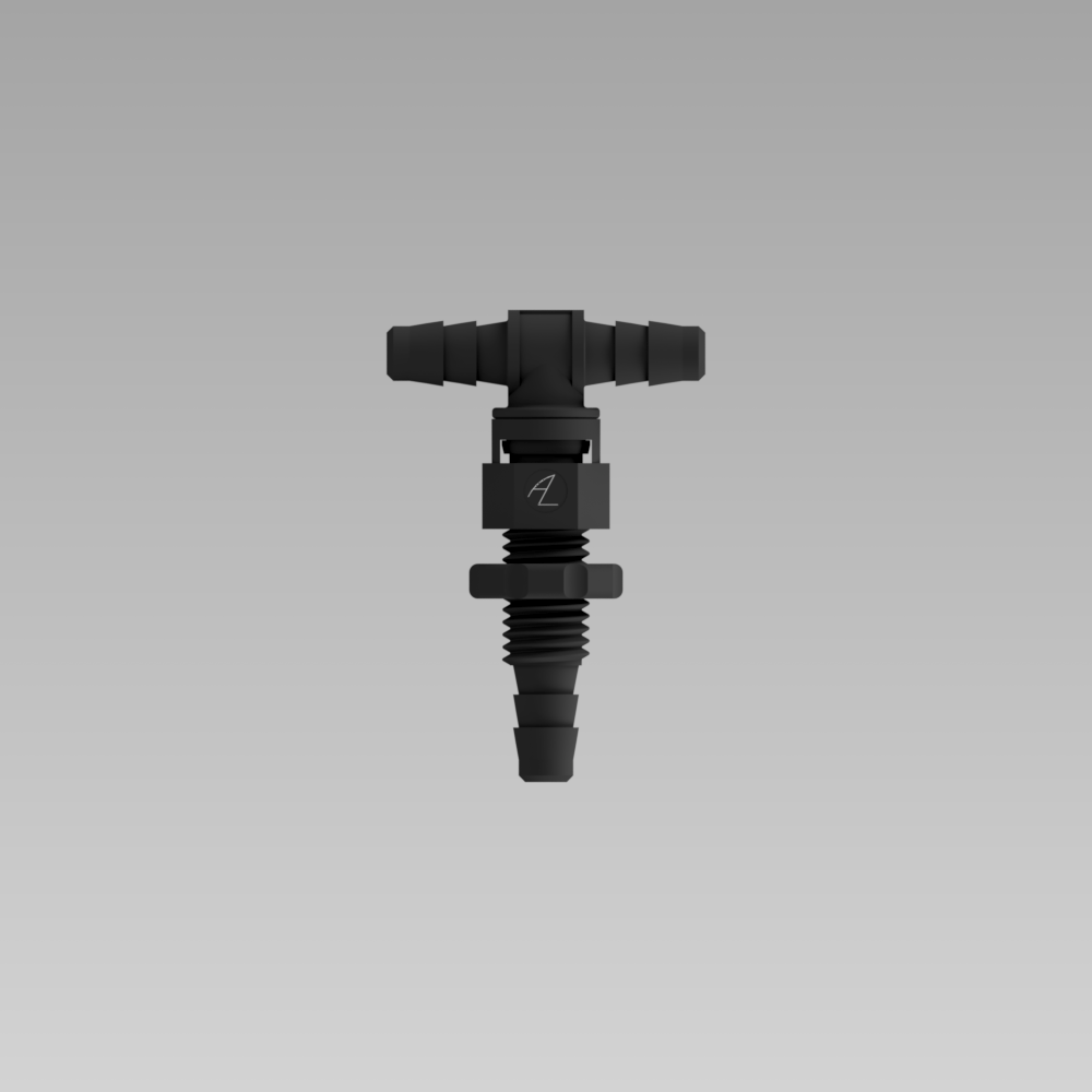 N/A Swivel Bulkhead Fitting, 1/16" Barbed Bulkhead X 1/16" Swivel Tee | Wetted Material(s) N/A Buna Nylon | Tubing Inside Diameter (ID) N/A 1/16 in |