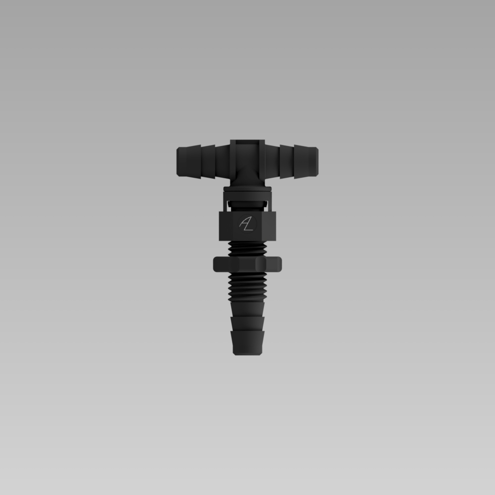 N/A Swivel Bulkhead Fitting, 1/16" Barbed Bulkhead X 1/8" Swivel Tee | Wetted Material(s) N/A Buna Nylon | Tubing Inside Diameter (ID) N/A 1/16 in1/8 in |